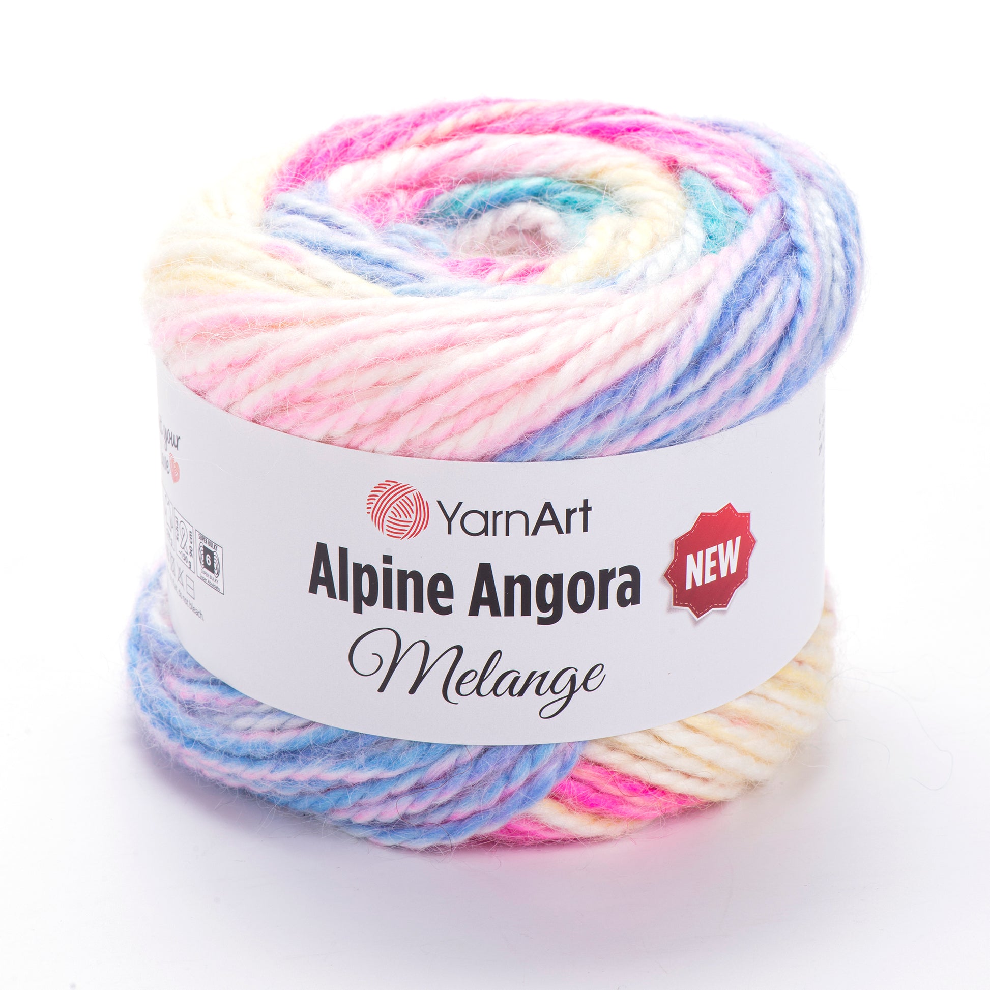 Alpine Angora Melange by YarnArt is a Super Bulky yarn perfect for knitting and crocheting. It features a blend of 20% wool and 80% acrylic, offering a unique texture. The 150g skein provides 150m of yarn, ideal for large projects. This versatile yarn is suitable for various knitting techniques.