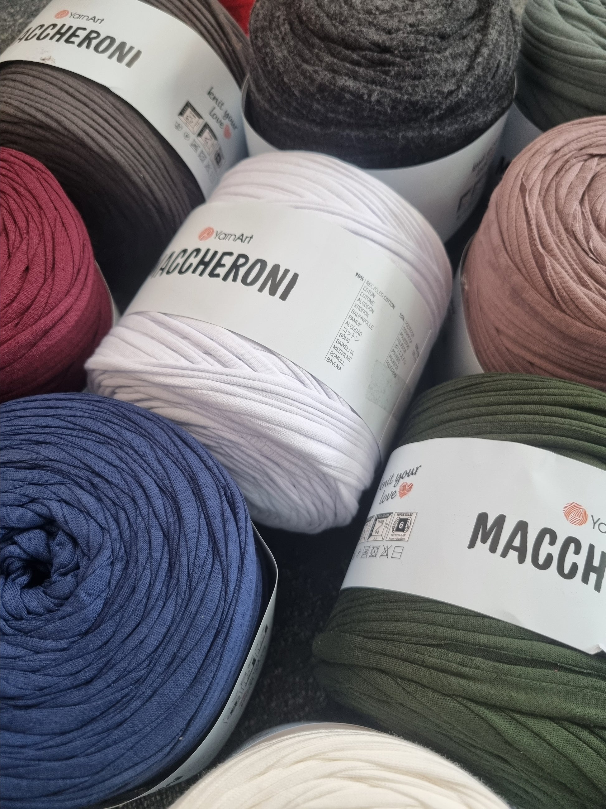 YarnArt Maccheroni 1 x 600g - 130m is a versatile T-Shirt Yarn. It's ideal for making bags, knitting, and crocheting. The blend of 90% Cotton and 10% Polyester ensures durability and softness. This yarn offers a perfect balance of comfort and functionality for various projects.